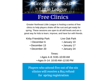 Players who attend five out of the six clinics will receive a $25 refund on their spring registration.